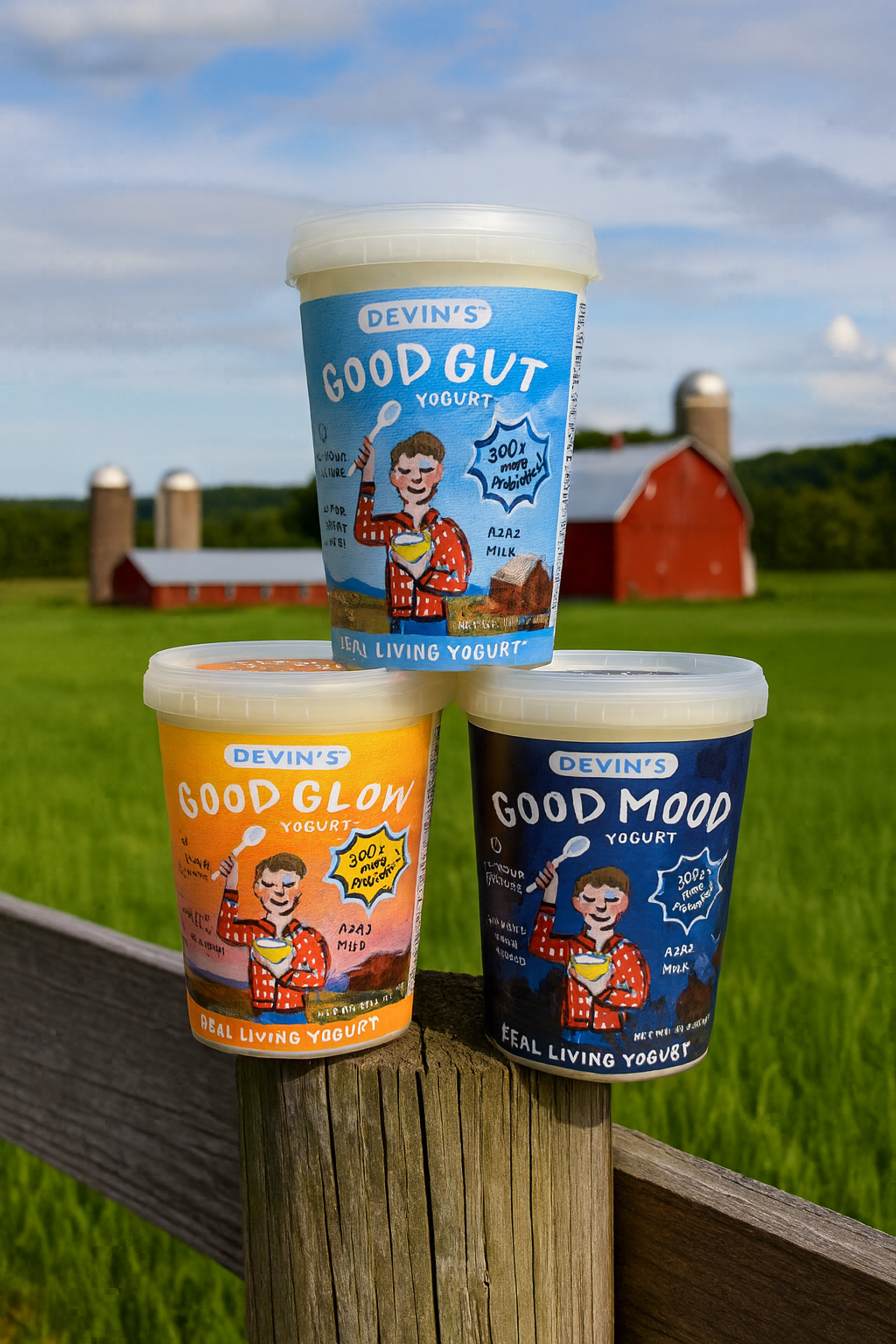 Soon people were knocking on my door asking for refills, and I realized maybe this yogurt was onto something. I sold the first batches at farmers markets under the name “GoodPoops Yogurt” (true story - grocery stores didn’t find the name as funny as I did). So I kept the magic but gave it a new name: Devin’s GoodGut Yogurt.